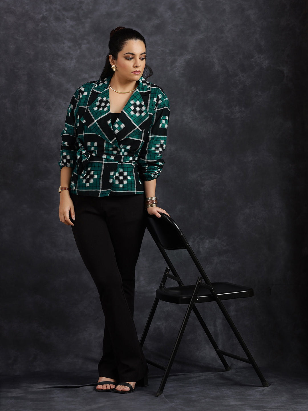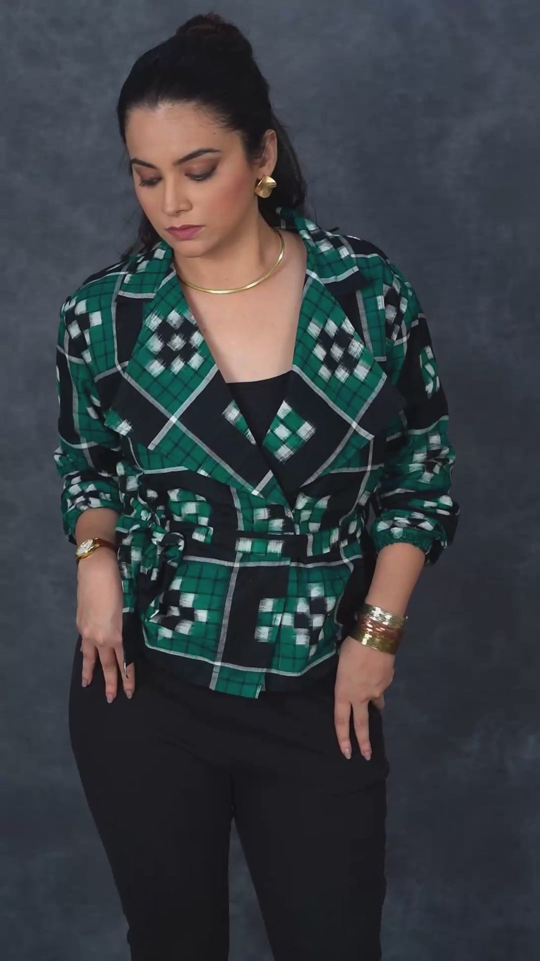 Sambalpuri Edit is a modern take on Odisha’s iconic Pasapalli Ikat. Inspired by the traditional pasa (dice board), Pasapalli is created using double ikat, where yarns are tied, dyed and aligned before weaving. The collection features structured jackets designed for work and evening wear. Handwoven, breathable, and made in limited quantities.